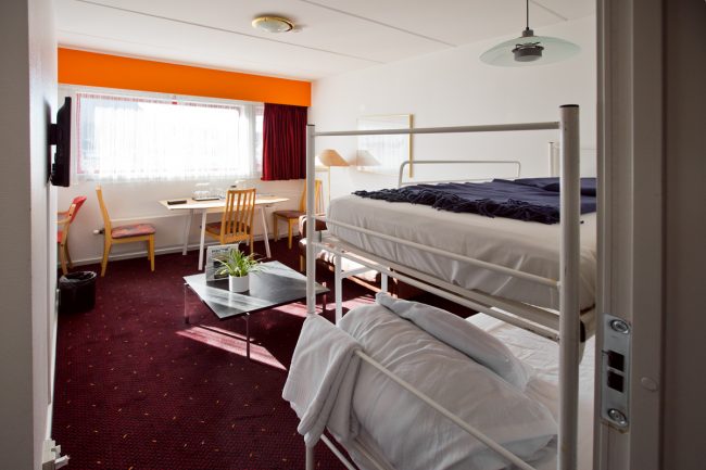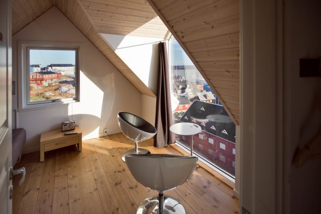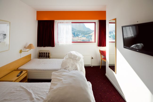 A Sisimiut, nous avons fait simple et dormi dans le principal hôtel de la ville, l’hotel Sisimiut. A quatre (mon père, Petite Oreille et Monsieur Oreille), nous avons pu avoir une suite familiale : une chambre double et une salle de bain partagée entre nous. C’était propre, moderne et simple.