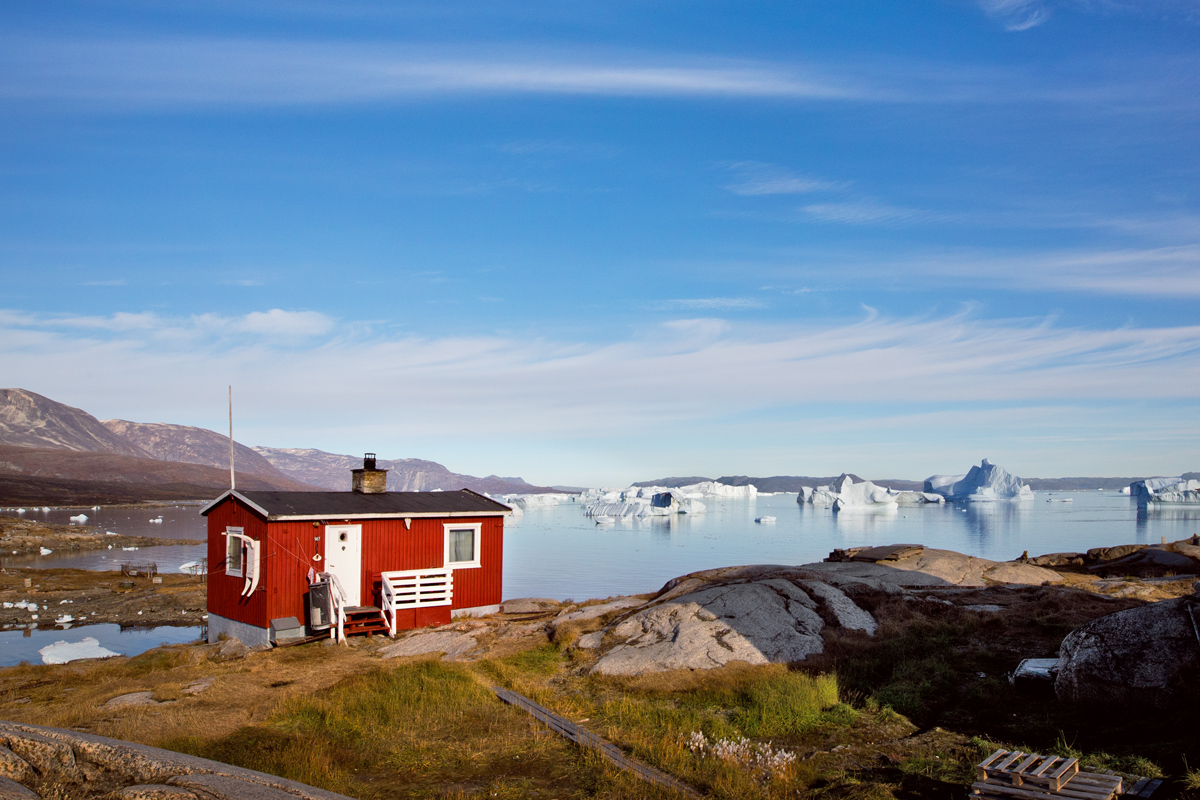 Pour pouvoir y rester une semaine, nous avons loué une petite maison à un écrivain danois spécialisé sur le Groenland, qui vient ici en vacances régulièrement. La maison était minuscule mais on s’y est senti bien. Par contre, elle n’était bien sûr pas représentative d’une maison groenlandaise moderne, tant dans la décoration que dans l’équipement : pas de salle de bain, eau froide au bidon, chauffage au pétrole mais vue superbe !