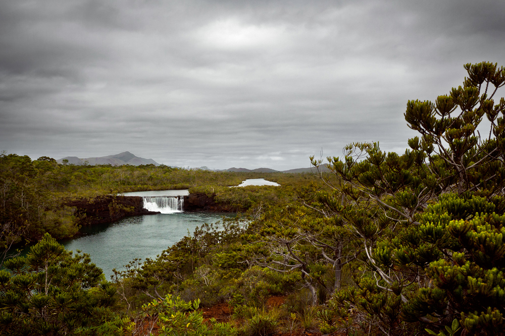 Nous commençons par découvrir le sud de Grande Terre. Végétation endémique datant de millions d’années, nous faisons un saut dans le temps. Nous passons par Prony, la chute de la Madeleine, Goro puis le lac de Yaté. Le paysage change sans cesse, d’un virage à l’autre, d’un nuage à l’autre. La lumière est très particulière, faisant tantôt ressortir le rouge de la terre gorgée de fer, tantôt plongeant le paysage dans l’obscurité.