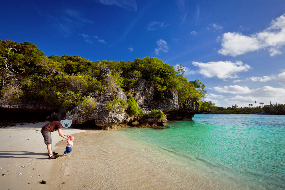 Lorsque ma fille a eu trois mois, je l’ai mise devant un globe, et je lui ai demandé où elle voulait aller. Elle semblait fascinée par les îles du Pacifique (lien vers la photo). Alors on est allés en Nouvelle Calédonie !