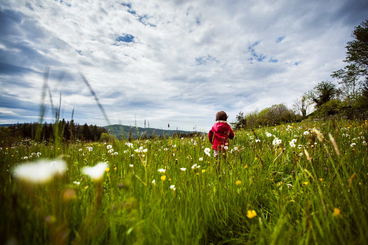 Pendant ce week-end dans la Loire, cette liberté a été appréciable et appréciée par nous deux. Elle avait le droit de courir dans l’herbe, de cueillir des fleurs, des pissenlits, d’en manger certaines qui sont comestibles (je vous en parlerai dans un autre article qui racontera tout ce voyage !). Elle a mis ses mains dans la rivière, a sauté dans la boue, et a beaucoup rigolé !