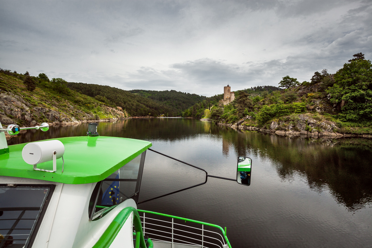 Au départ de Saint-Victor-Sur-Loire, on embarque pour une petite croisière qui nous permet de revoir les lieux, mais avec une nouvelle perspective, au fil de l’eau. Au loin, sur la colline, au devine aisément le château d’Essalois. Plus près, je découvre les petits coins cachés, l’île de Grangent, l’ancienne chapelle, la vieille abbaye restaurée. Et bien sûr, nous longeons le barrage de Grangent, lui qui a permis la création du lac éponyme. Le tout est commenté par un guide qui raconte l’histoire de la région, du barrage, de la modification du paysage.