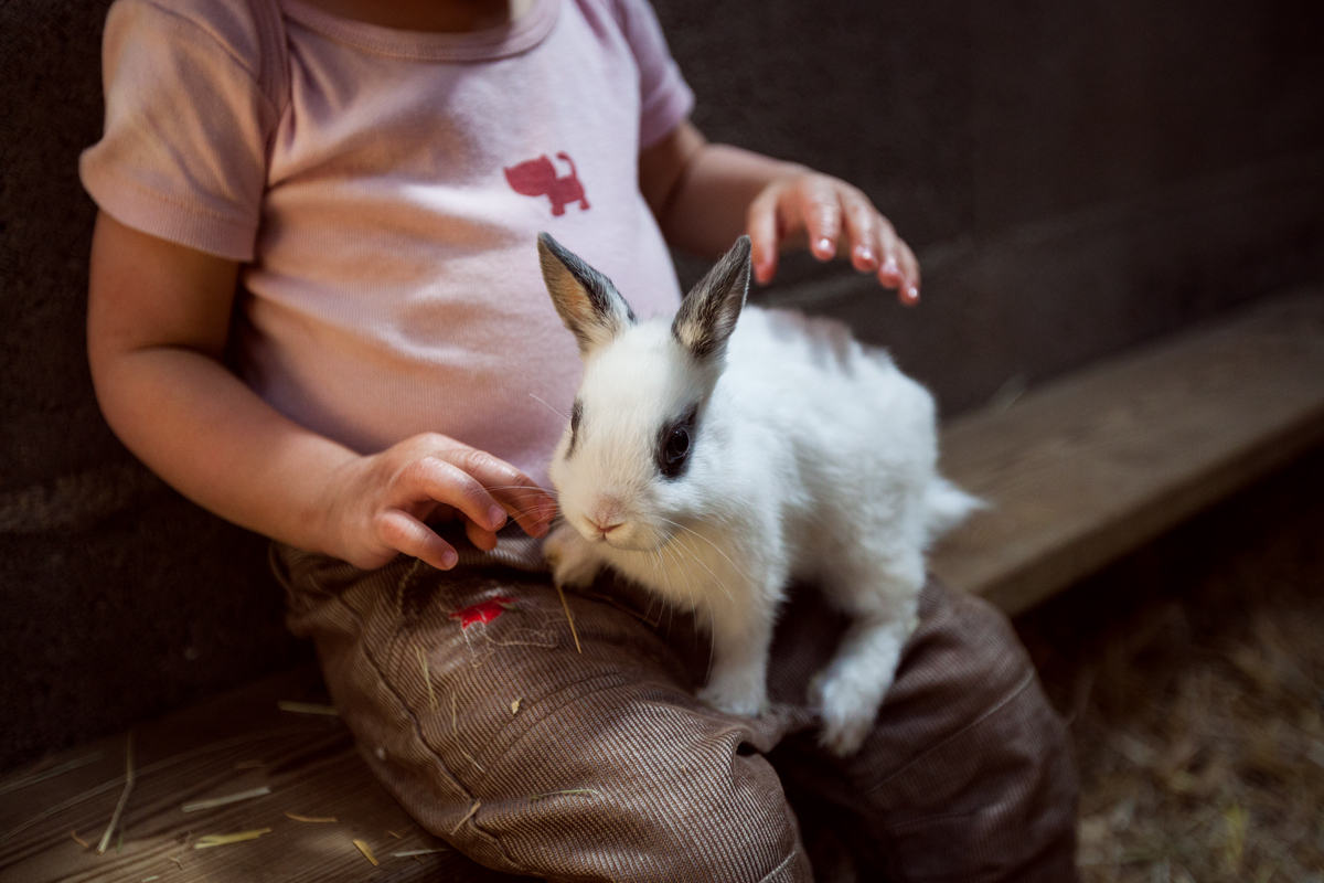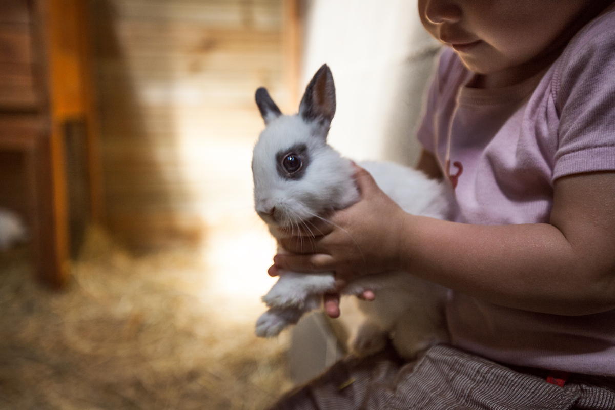 Imaginez, des chevreaux, des chèvres, des moutons, des veaux, des vaches, des cochons, des lapereaux, des poussins, et un âne. C’est une vraie ferme, une affaire de famille, où la dernière génération a décidé de faire visiter l’exploitation aux enfants. Et voilà Petite Oreille surexcitée, toute contente de caresser les chevreaux, de donner à manger à l’âne Cadichon, de serrer lapins et poussins contre elle en disant « c’est mignon » ou « c’est le mien ».
