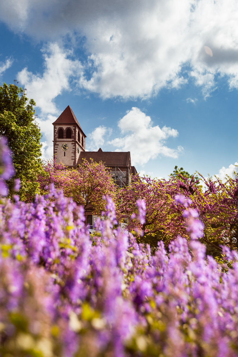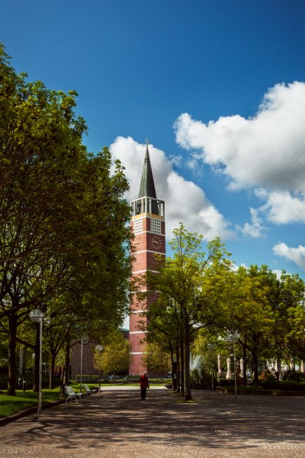 Ci-dessus et ci-dessous, l’Evangelische Stadtkirche de Pforzheim, construite à la fin des années 60. Visible depuis à peu près n’importe quel endroit du centre ville, c’est un bon point de repère pour retrouver son chemin !