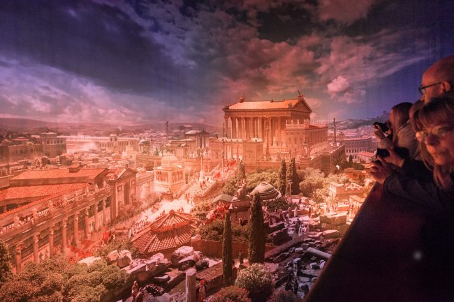 Asisi expose ses panoramas dans plusieurs villes (on en trouve à Leipzig, Dresde, Berlin, et même à Rouen !) et les change régulièrement. L’idée est toujours de représenter un lieu dans un moment de son histoire. En l’occurrence, à Pforzheim, c’est donc Rome en l’an 312, le jour où l’empereur Constantin prend possession de la ville.