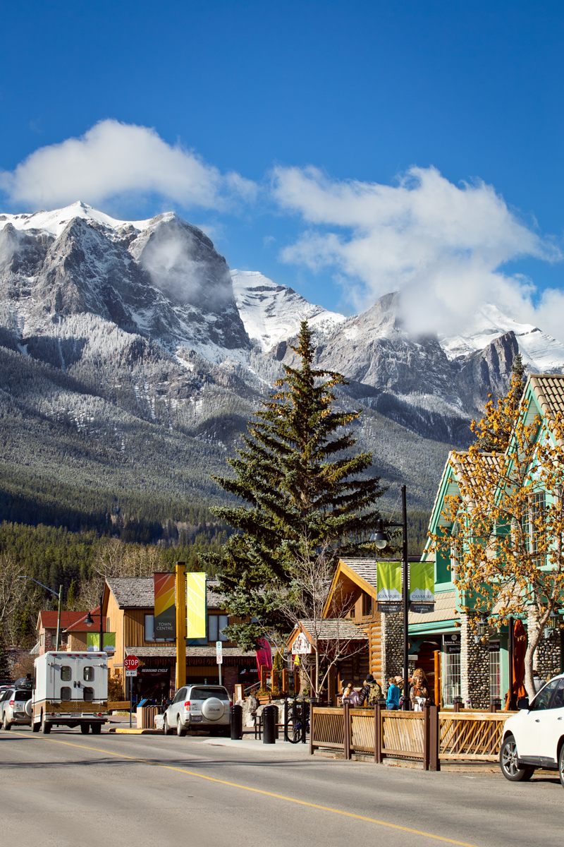 Même si Can­more est tou­ris­tique, la ville garde un esprit très vil­lage : tout se fait faci­le­ment à pied. Le centre ville se résume à une pro­me­nade le long de la rivière Bow et une artère prin­ci­pale avec quelques boutiques.