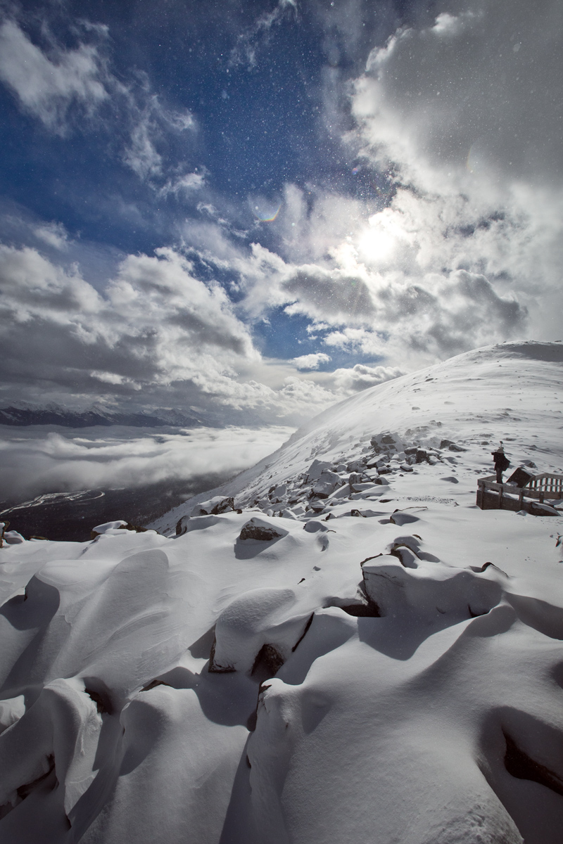 En moins de dix minutes on grimpe à 2277m d’al­ti­tude, pas très loin du som­met du Mont Whist­lers (2463m), que je ne ten­te­rai pas ce jour-là vu les condi­tions météo­ro­lo­giques, mais dont l’ascension se fait très bien en d’autres saisons !