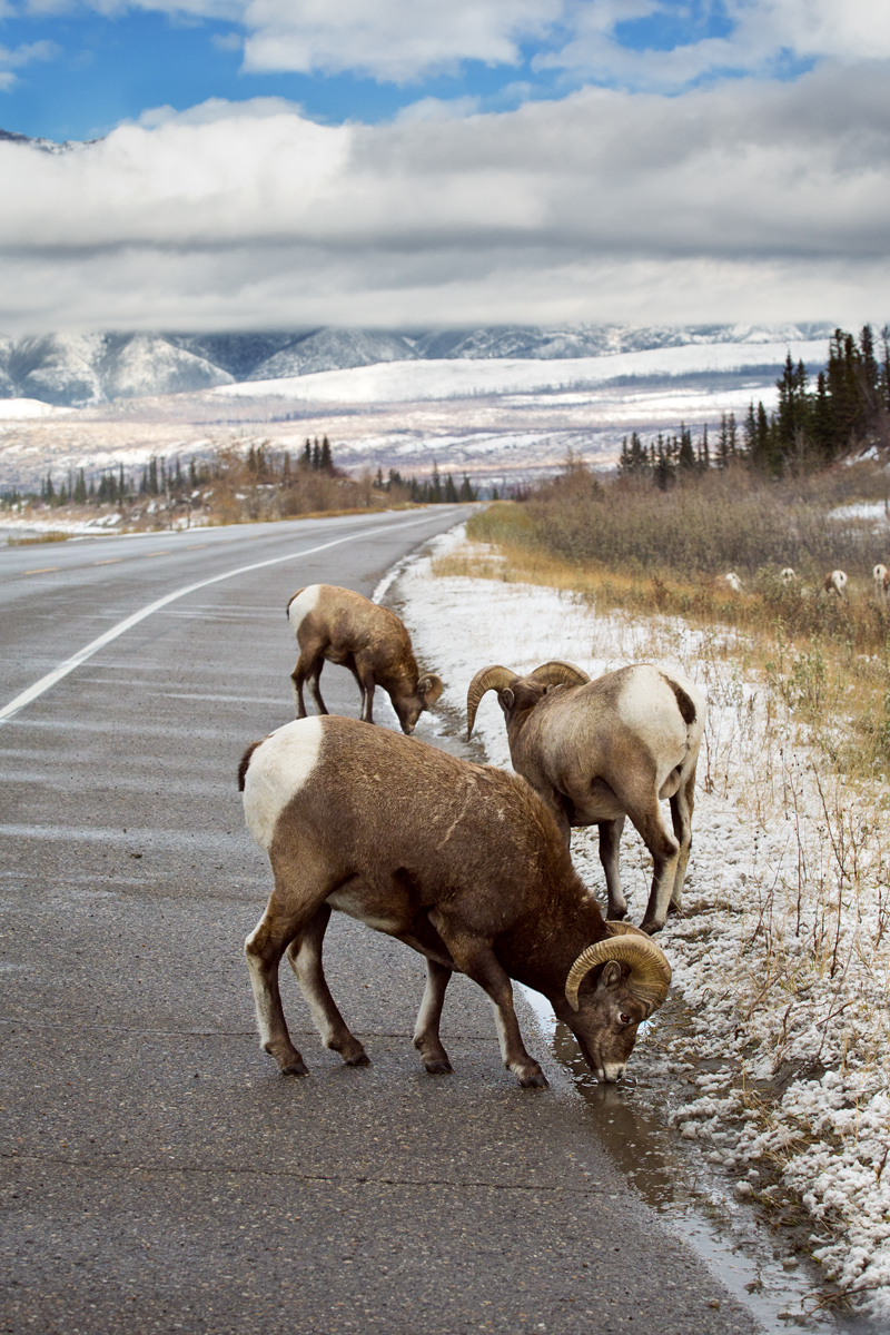 Si vous condui­sez sur les routes cana­diennes, pre­nez le temps de regar­der les bas côtés, vous pour­riez avoir des sur­prises ! Au Yukon, il y a deux ans, j’a­vais ain­si obser­vé plu­sieurs ours, et cette fois-ci, dans les Rocheuses, ça aura été une faune de montagne.