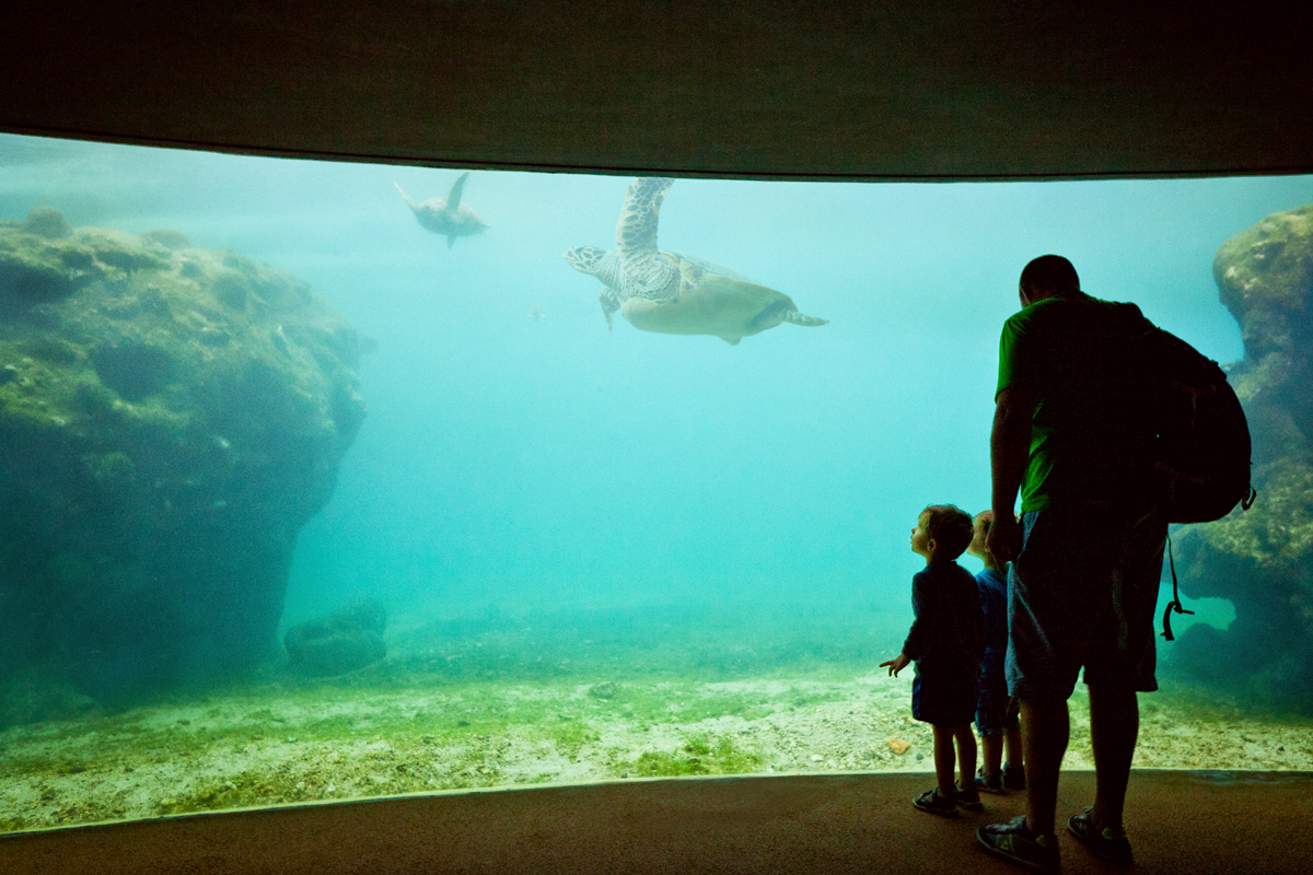 Du coup, nous sommes allées passer la matinée à Kelonia, l’observatoire des tortues marines, toujours à Saint Leu. C’est un lieu à l’histoire particulière, et dont la mission l’est tout autant. Lorsqu’on le visite, on s’extasie forcément sur le bassin avec les tortues, qu’on aperçoit d’abord à l’extérieur, avant de voir ce qu’il se passe sous l’eau grâce à une vitre, dans l’espace d’exposition.