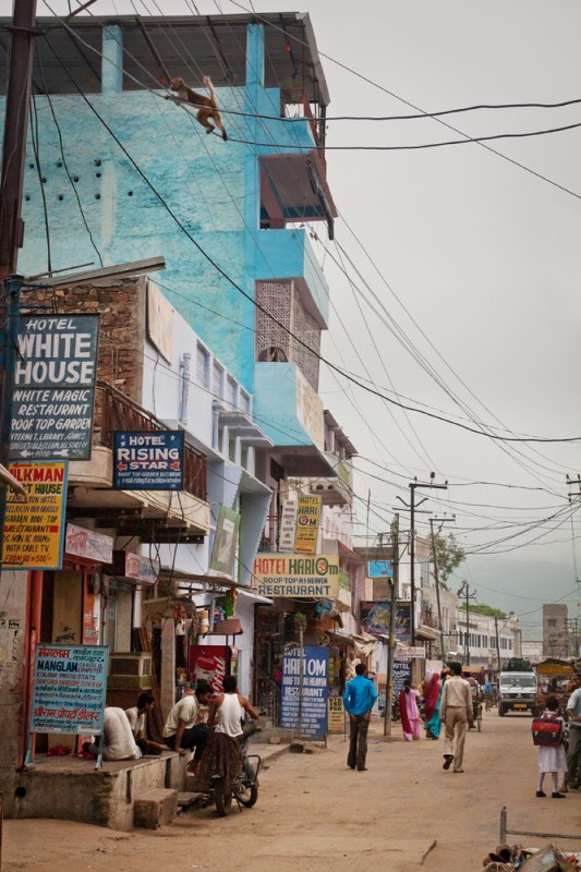 La photo ci-dessus a été prise à Pushkar, en Inde. Si vous cherchez bien, vous verrez le petit détail qui m’a poussée à déclencher ! Elle montre bien le nombre de fils électriques qui peuvent passer au-dessus de notre tête.