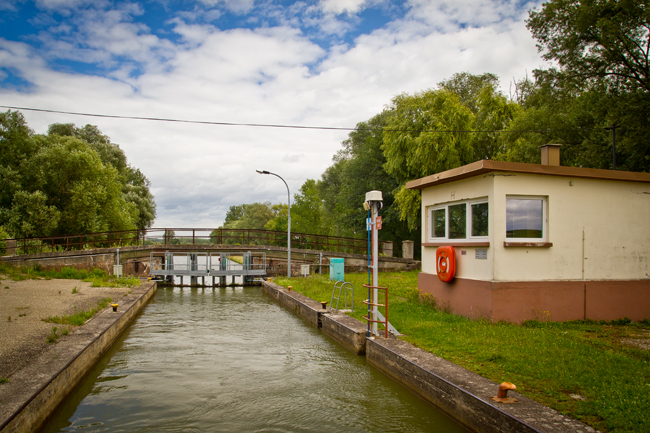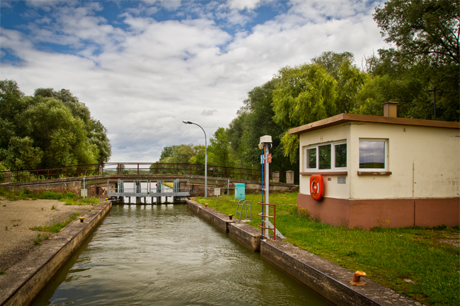 Sur la deuxième, un fil électrique traverse l’image et, cette fois-ci, j’ai choisi de l’effacer : il ne raconte rien. Savoir que l’électricité traverse le canal en aérien pour rejoindre le poste de l’écluse ne change pas le sens de l’image. C’est typiquement le genre de câble qu’on ne voit pas sur le moment, mais qui gâche l’image, en coupant ainsi le ciel et en attirant le regard.