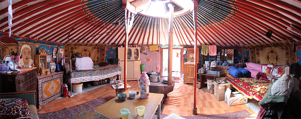 Mieux, c’est parfois le seul moyen de couvrir une scène. Par exemple, restons en Mongolie : dans une yourte, l’espace est très réduit, et sans possibilité de reculer. Si je veux en photographier l’intérieur et montrer le résultat sur une seule image, je suis obligée de passer par la photo panoramique.