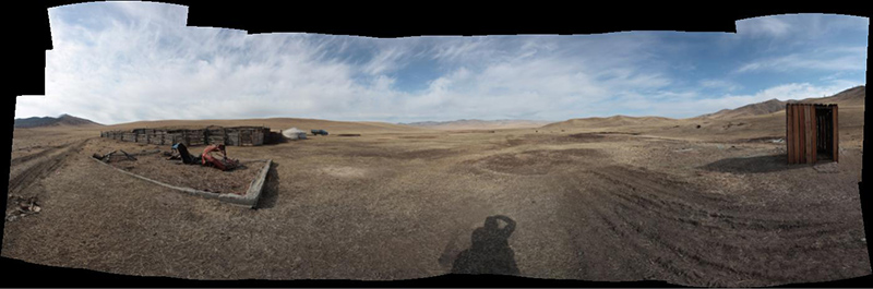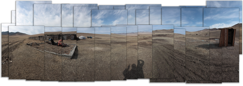 Certains recadrent leurs images pour en modifier le format, mais généralement, il va plutôt s’agir d’assembler plusieurs photos. On couvrira ainsi un angle beaucoup plus large. Ainsi, sur la photo ci-dessus, vous pouvez avoir l’impression que deux yourtes se font face, alors qu’en réalité celle de gauche est la même que celle de droite : j’ai fait un tour complet sur moi-même.