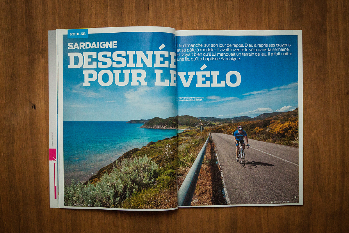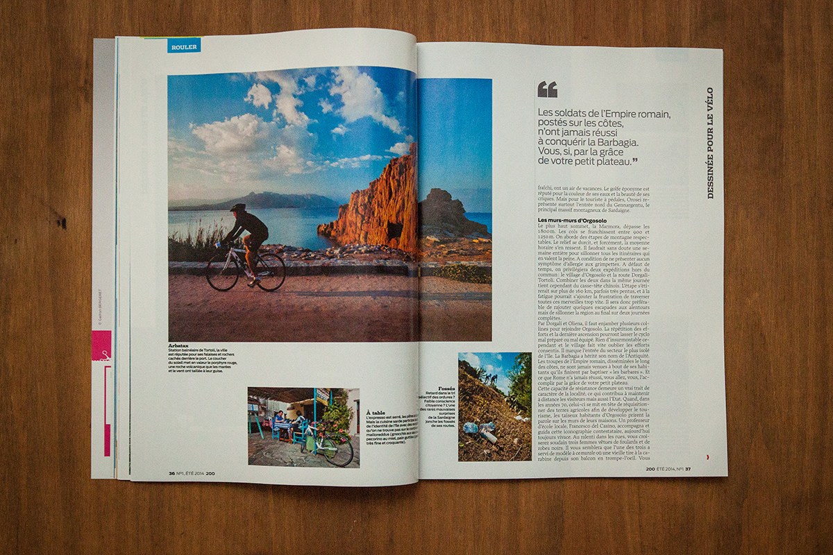 Bon, notez que mon approche du vélo en voyage n’est pas vraiment la même que celle du magazine : moi, je mets des portes bagages, et je roule doucement en faisant plein de pauses photos ! J’ai bien un beau vélo de course, mais il ne me sert qu’à me déplacer en Île-de-France, ou à me défouler le week-end. Chez 200, on emmène (ou, comme ce fut le cas en Sardaigne, on loue) un vélo de course, et on avale du bitume. Ça n’empêche pas de faire un peu de tourisme et d’apprécier les paysages mais c’est avant tout du sport.