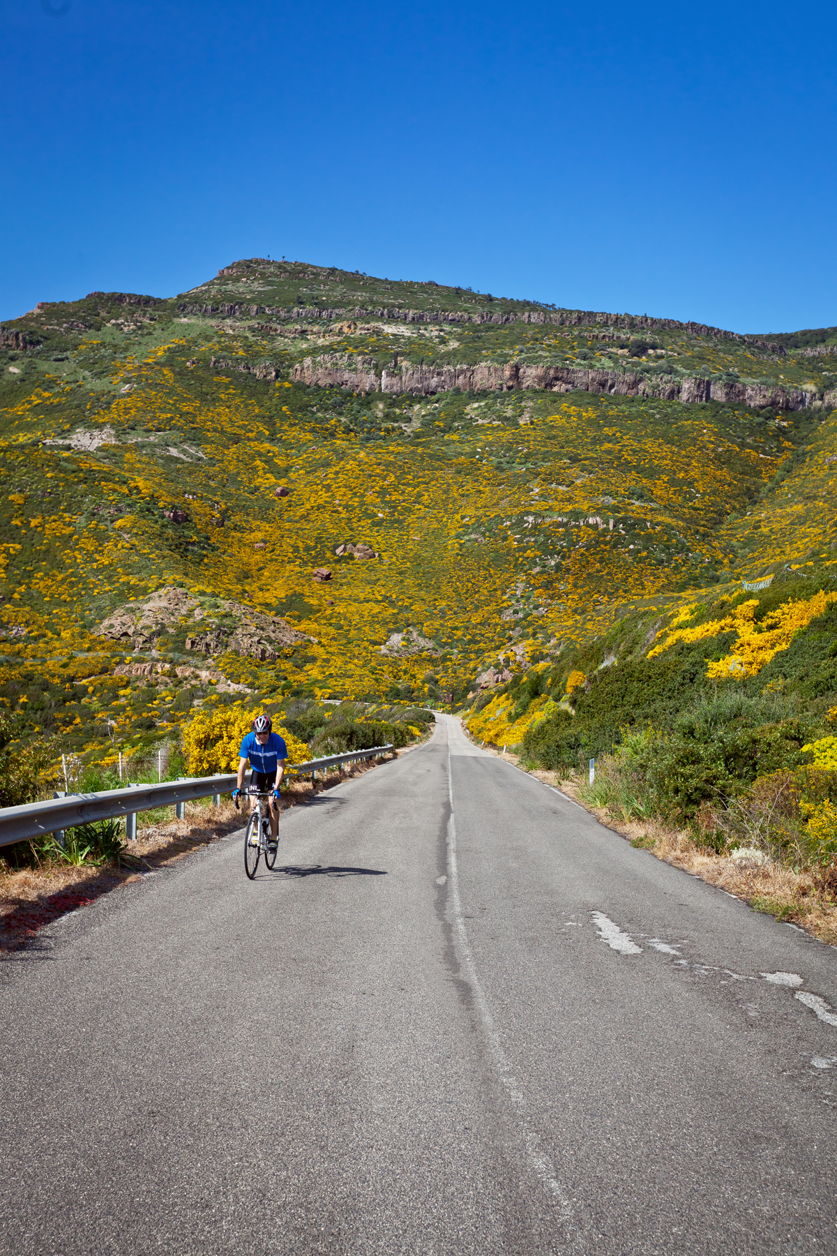 Je ne connaissais pas du tout la Sardaigne. J’ai d’abord souri en découvrant les influences catalanes un peu partout, puisque j’en arrivais tout juste, puis j’ai découvert des paysages magnifiques. Nous avons commencé par la route entre Alghero et Bosa, l’un des plus beaux villages de l’île. La route est superbe, longeant la mer, serpentant sur un dénivelé qui offre de belles grimpettes !