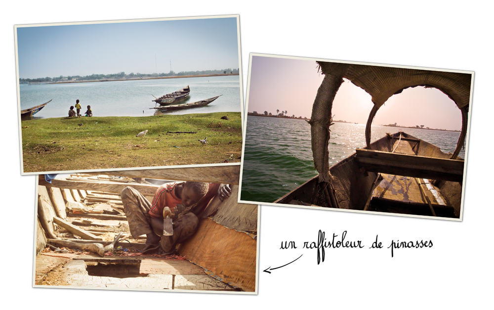 Pinasse : n. f. petite embarcation à fond plat très utilisée au Mali que ce soit pour la pêche, pour le transport des marchandises, ou pour promener les touristes.