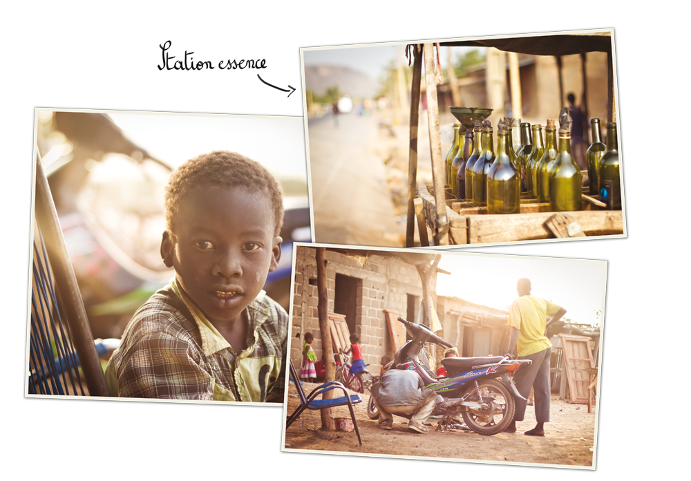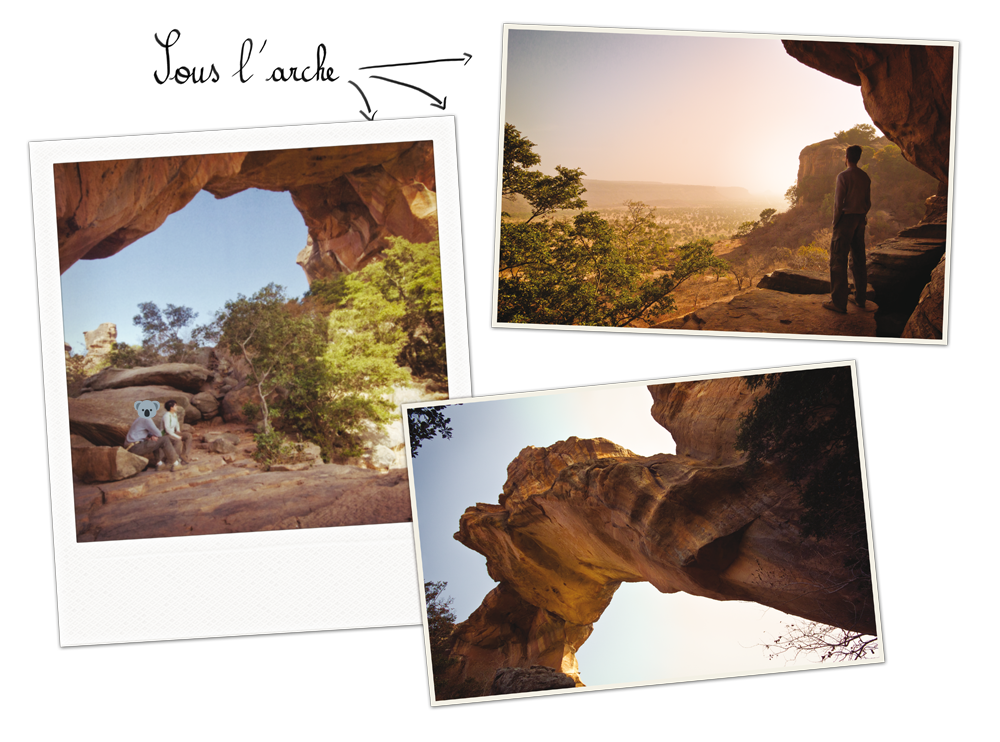 Il nous amène dans une auberge. Il s’agit de petites cases individuelles. C’est mignon, mais on réalise qu’il n’y aura pas de famille cette fois-ci : il est propriétaire du lieu, et c’est là qu’il accueille. On décline sa proposition de petit-déjeuner et il nous lance alors un « bon, ben on y va, alors ». On obtempère, sans vraiment savoir de quoi il s’agit, pensant qu’on va rencontrer quelqu’un, ou faire le tour de la ville. Daouda marche devant nous, rapidement rejoint par un ami à lui. On reste silencieux, derrière. Agacée par la fumée de leurs cigarettes respectives, je profite d’un moment où ils s’arrêtent pour demander notre destination. Il me répond alors, comme une évidence, « bah on va à l’Arche ».