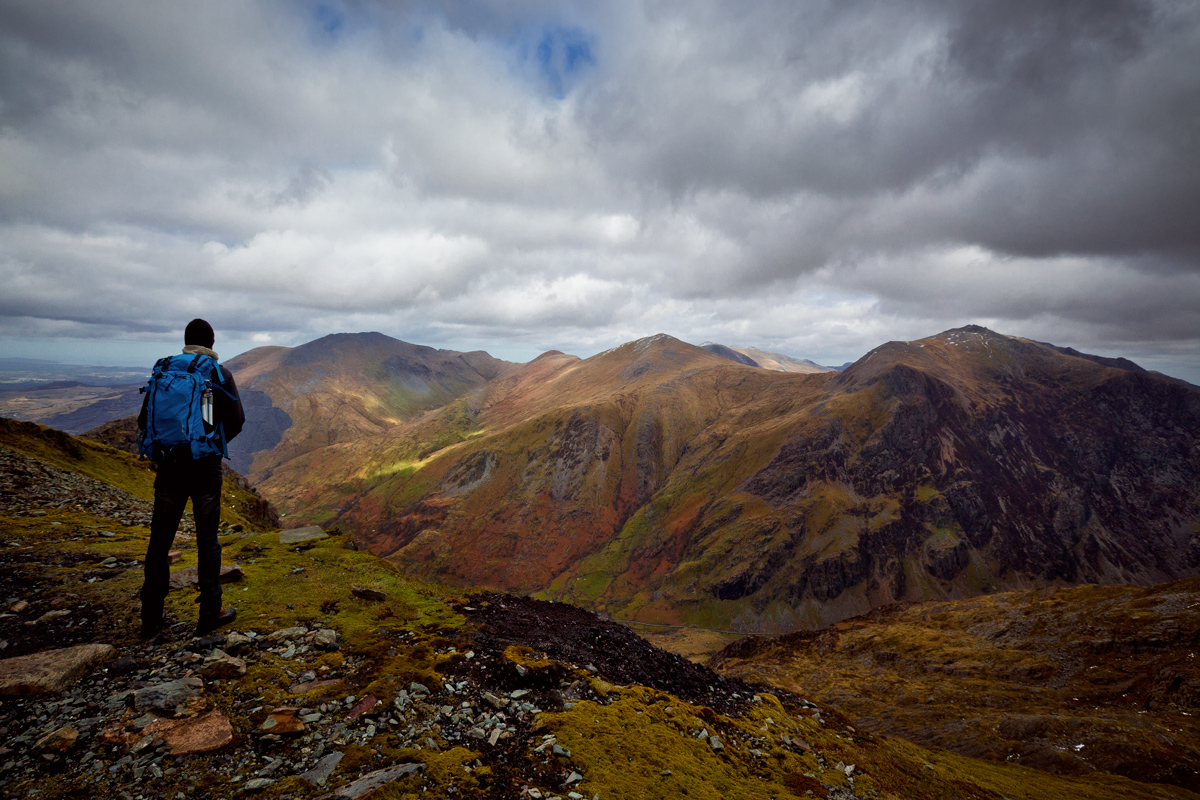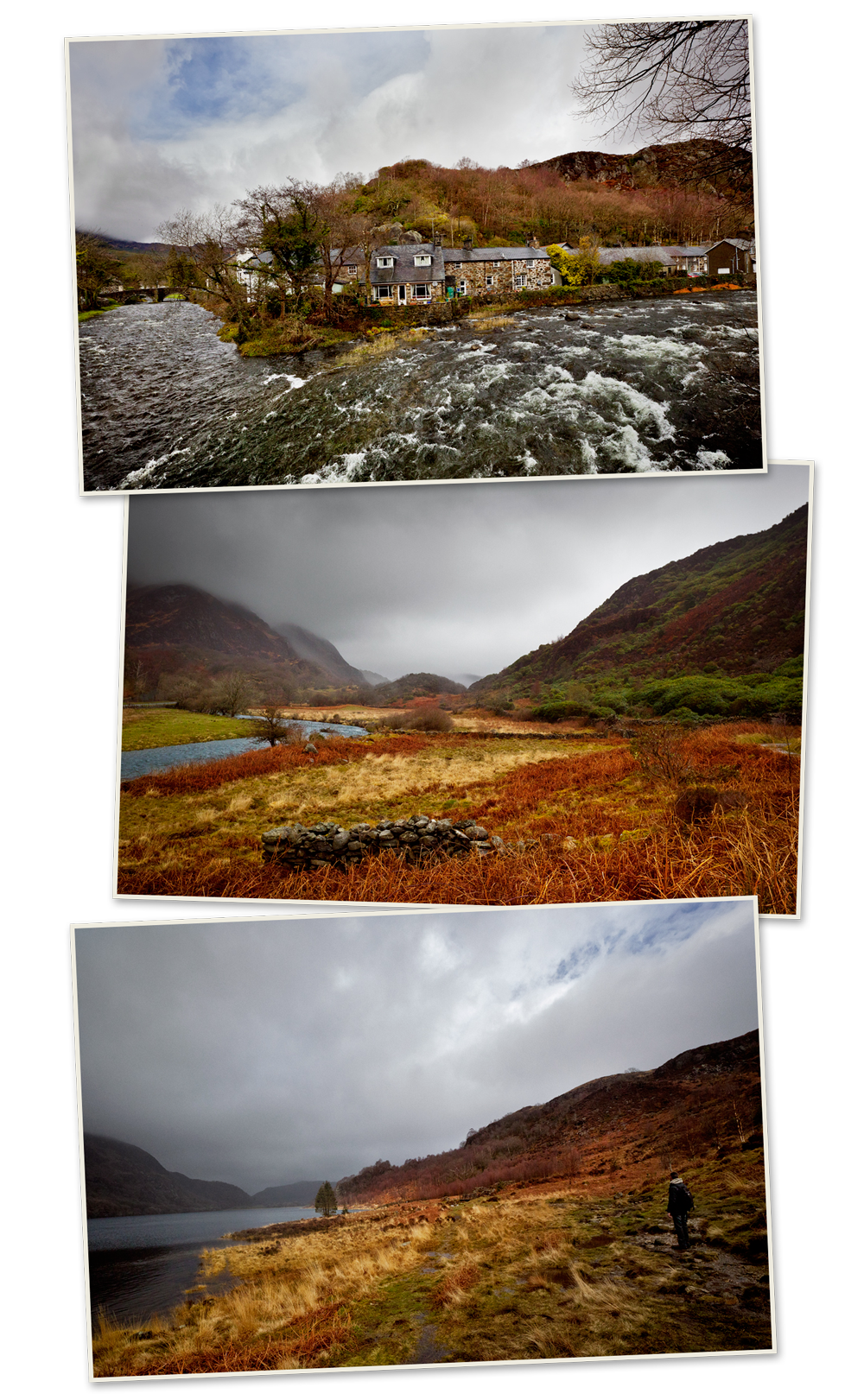 Je retrouve les couleurs que j’avais tant aimées à Llaberris, ces oranges, ces jaunes, ces verts. Malheureusement, la lumière n’est pas de la partie, et je devrais me contenter de bougonner sous ma capuche, maugréant qu’il faudra qu’on revienne, que c’est vraiment magnifique, mais que grml#&@ fichue pluie. Et là j’ai une pensée pour Emmanuel, grâce à qui j’ai appris que Snowdonia est l’un des endroits les plus pluvieux de Grande Bretagne.