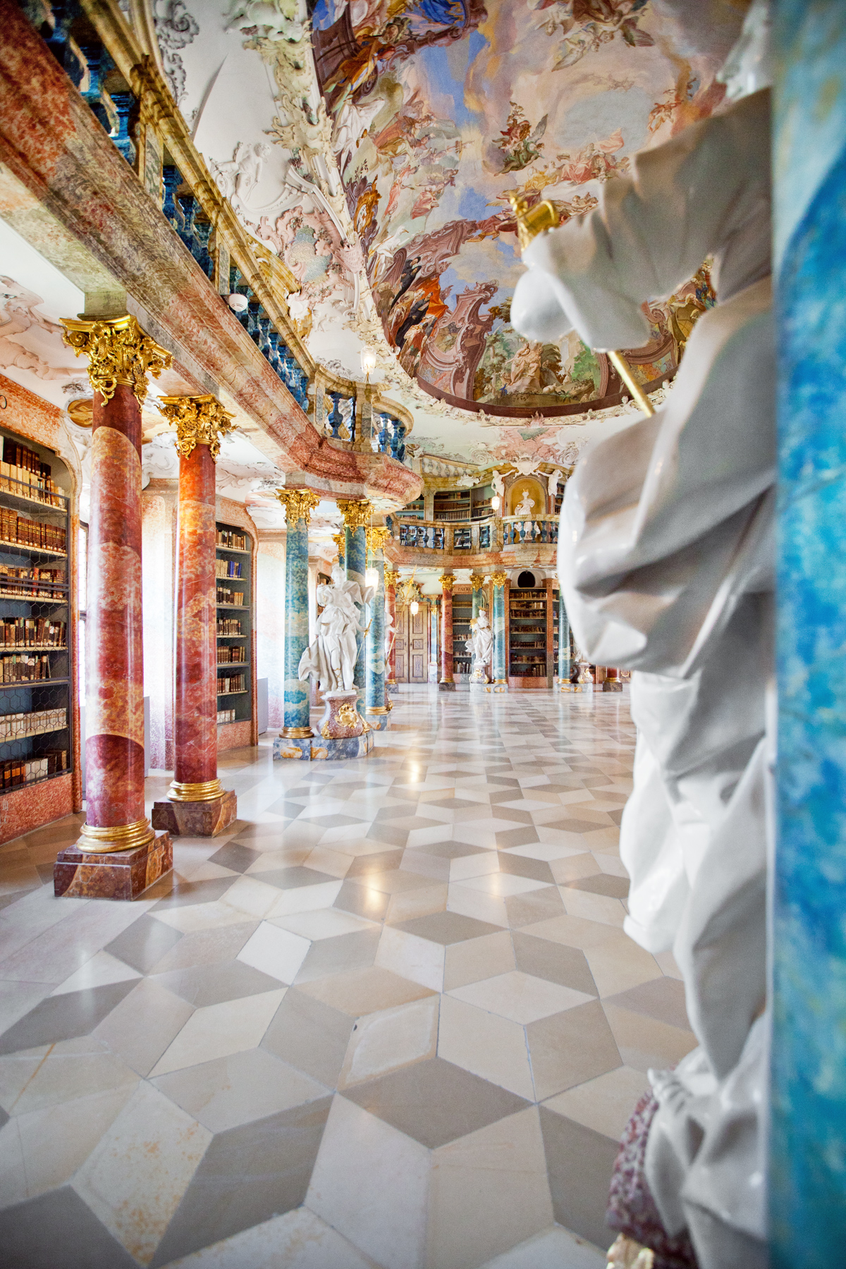 L’abbaye est un beau bâtiment baroque qui n’a plus grand chose d’un édifice religieux (elle a longtemps été utilisée comme caserne) si ce n’est la petite basilique. Elle abrite une partie de l’université, et quelques logements étudiants. Mais on peut quand même en visiter une partie : l’église, bien sûr, un musée dans l’ancien couvent, et la bibliothèque, qui vaut sa renommée à l’Abbaye.