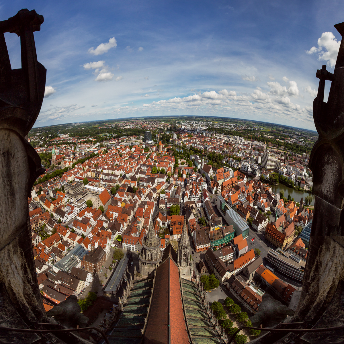 La plus haute flèche d’Église au monde, disent-il comme un défi. 768 marches pour se hisser tout en haut, à 141 m, et dominer Ulm et la campagne du Bade-Wurtemberg.