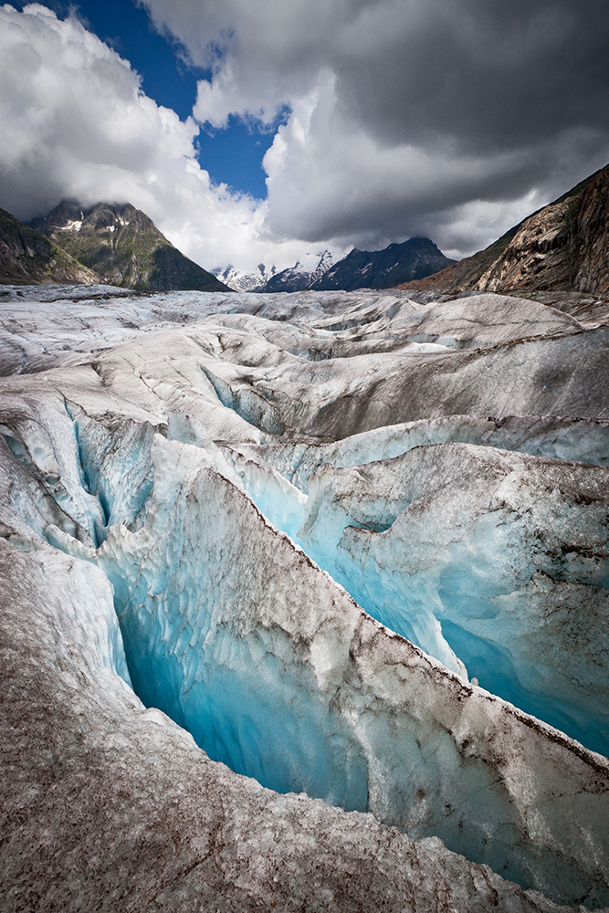 La cou­leur de la glace dans les cre­vasses, c’est à tom­ber. Enfin, il ne s’a­gi­rait pas d’embarquer ta cor­dée dans ce trou. Superbes images, je suis comme pyr­ros, je trouve que les ciels nua­geux, gris, ora­geux apportent un vrai plus aux photos.