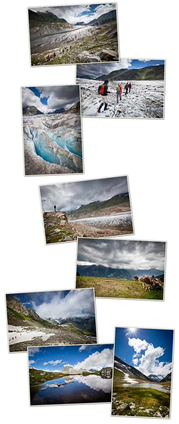 Je vous racon­te­rai tout ça plus en détails dans les jours à venir, mais en atten­dant, voi­ci une pre­mière sélec­tion de pho­tos qui résument bien le séjour. Vous voyez donc, notam­ment, le Gla­cier d’A­letsch (le plus grand gla­cier d’Eu­rope), sur lequel nous avons fait une ini­tia­tion au cram­pon­nage (et per­son­nel­le­ment j’ai trou­vé ça très sym­pa, même si gérer la corde n’est pas simple avec l’œil dans le viseur !).